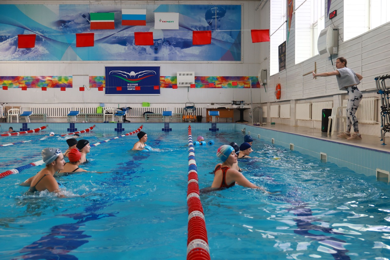 Бассейн спорткомплекса — это 25-метровая чаша на шесть дорожек с комфортной температурой воды. Здесь свободно плавают, проводят групповые занятия и индивидуальные тренировки как для взрослых, так и для детей — от новичков до спортсменов. В бассейне также проходят занятия по аквааэробике.