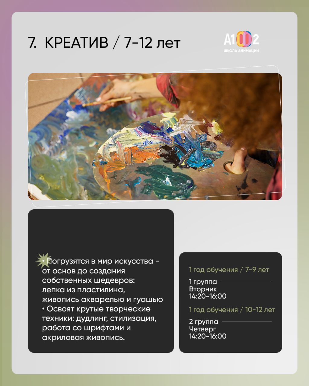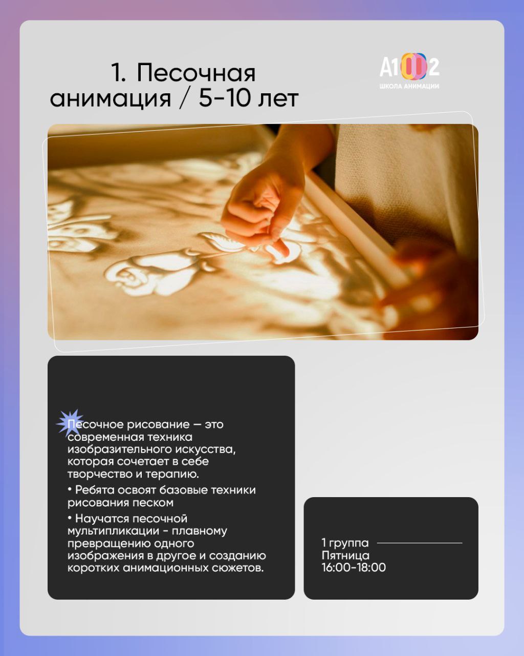 Здесь дети, подростки и взрослые учатся воплощать свои идеи. Каждый может выбрать направление по душе — от песочной анимации и классического рисования до профессиональной 3D-графики и настоящих мультфильмов.