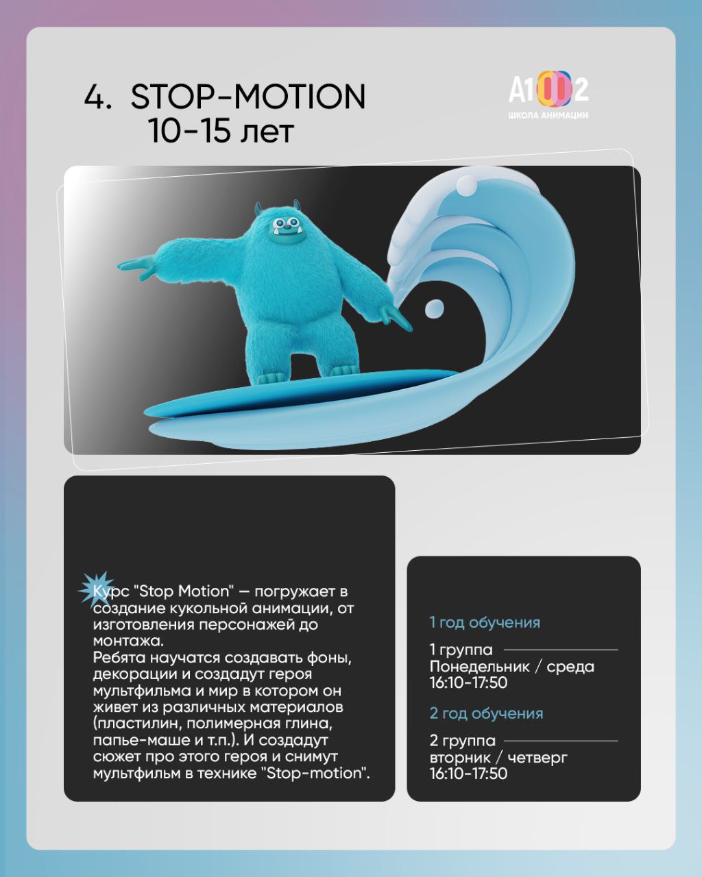 Школа анимации «А1002» — это место, где воображение становится движением, а фантазия обретает жизнь на экране.