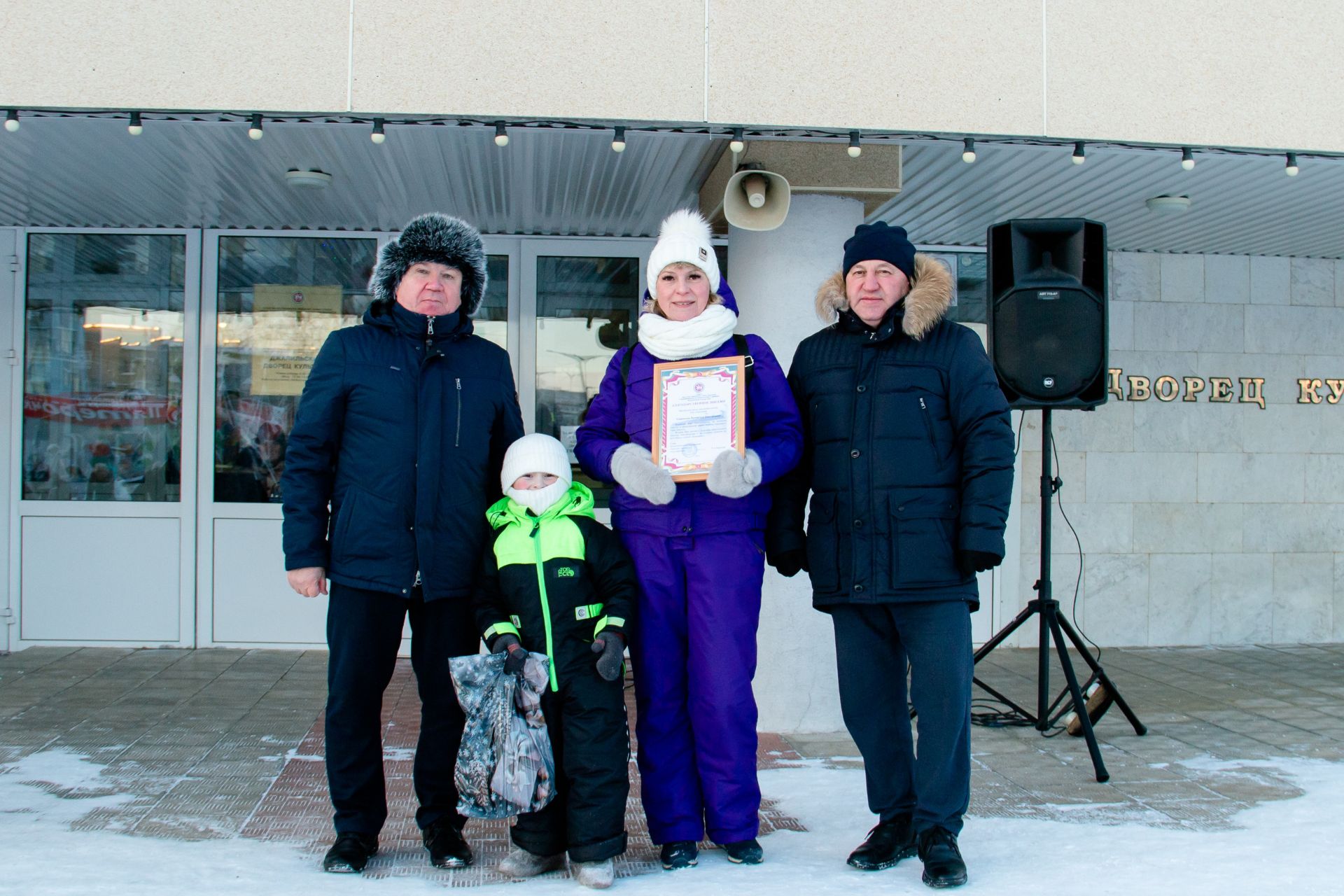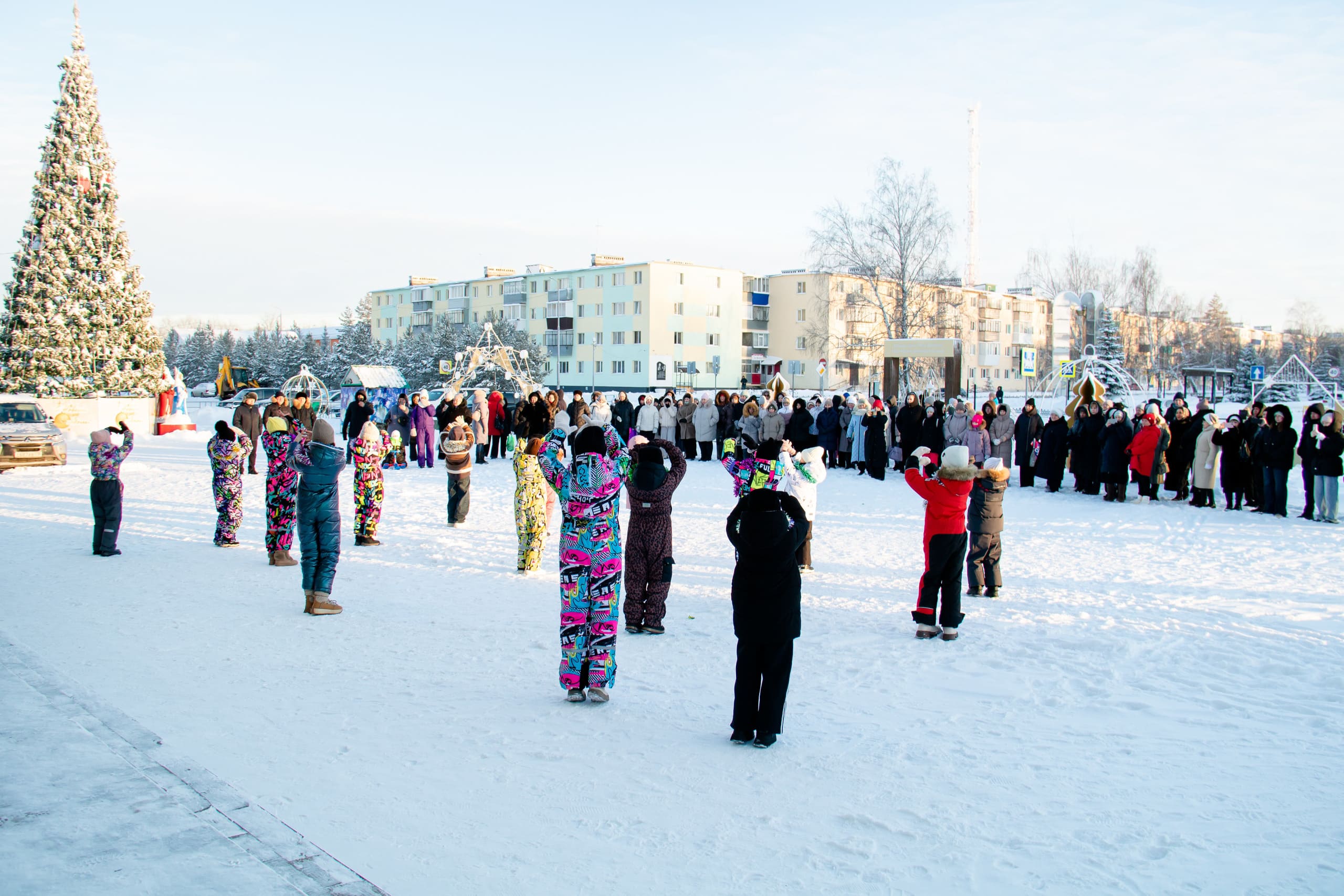 Праздничная программа включала музыкальные и танцевальные номера, а также участие сказочных персонажей — Деда Мороза, Снегурочки и Бабы Яги. Несмотря на зимнюю погоду, участники праздника вместе зажгли огни на новогодней ёлке, создав тёплую и по-настоящему праздничную атмосферу.