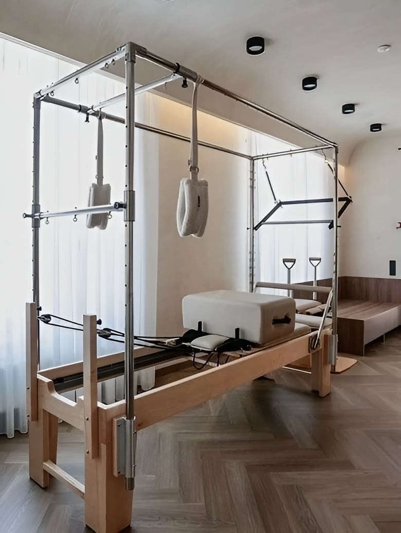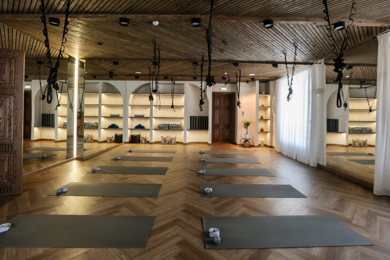 Занятия проходят в небольших группах и индивидуально, а в распоряжении гостей — всё необходимое оборудование: коврики, болстеры, гамаки, блоки, реформеры. После практики можно отдохнуть в чайной зоне и воспользоваться душевой комнатой.