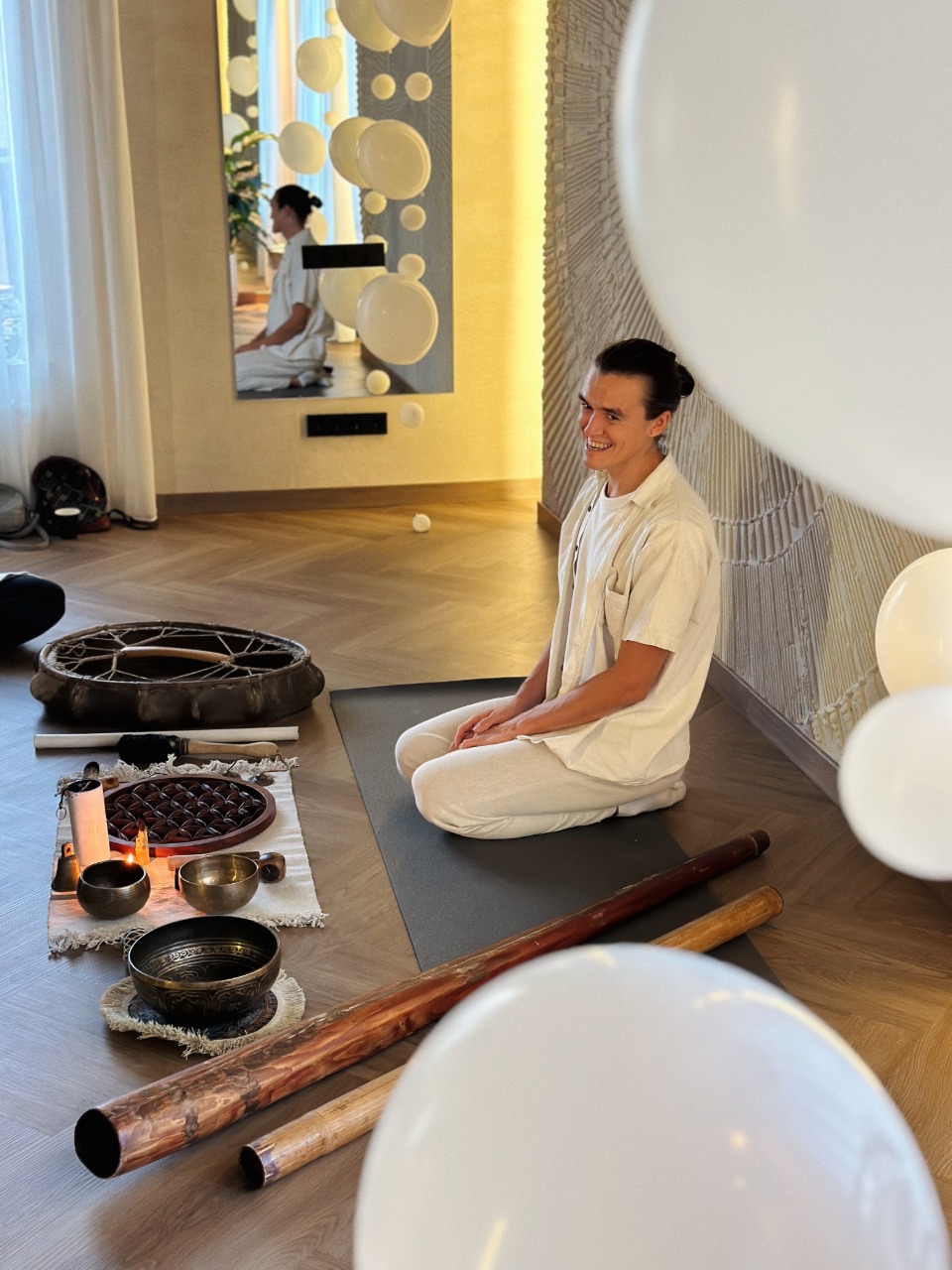Отдельное внимание уделяется звукотерапии. На звуковых медитациях участники погружаются в океан вибраций, создаваемых с помощью тибетского гонга, чаш, колокольчиков и других инструментов.